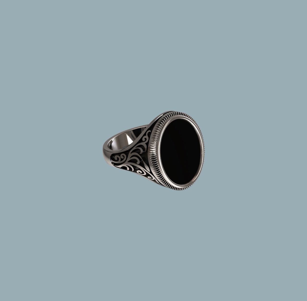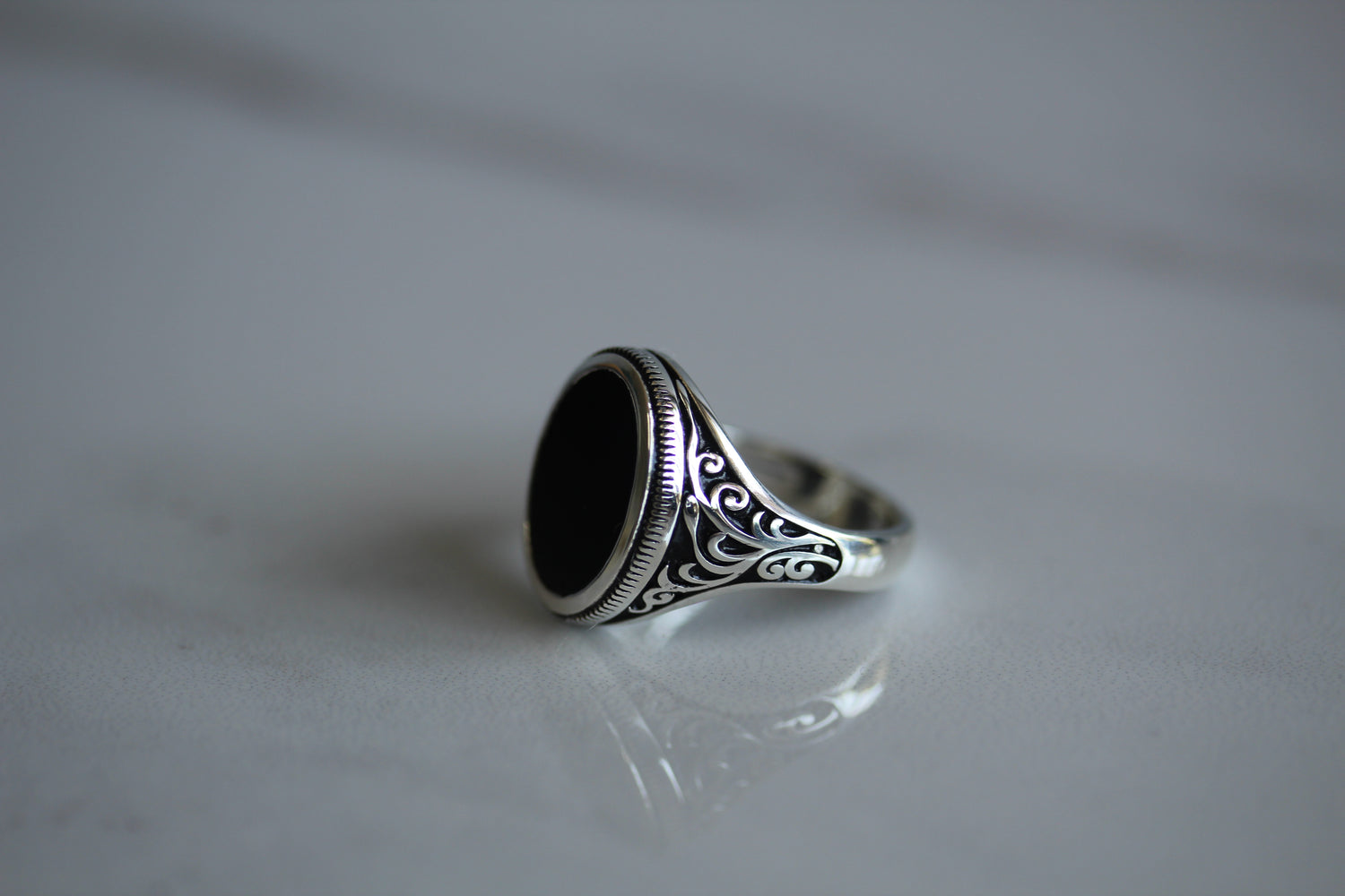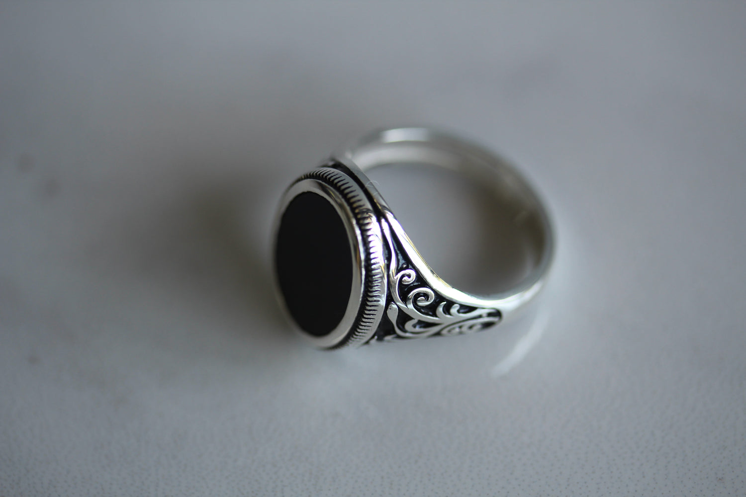 A unique sterling silver 925 gents ring set with a genuine 16mm x 12mm oval shape ONYX stone