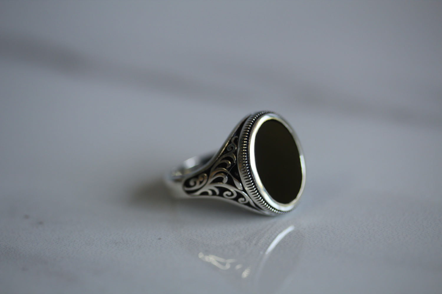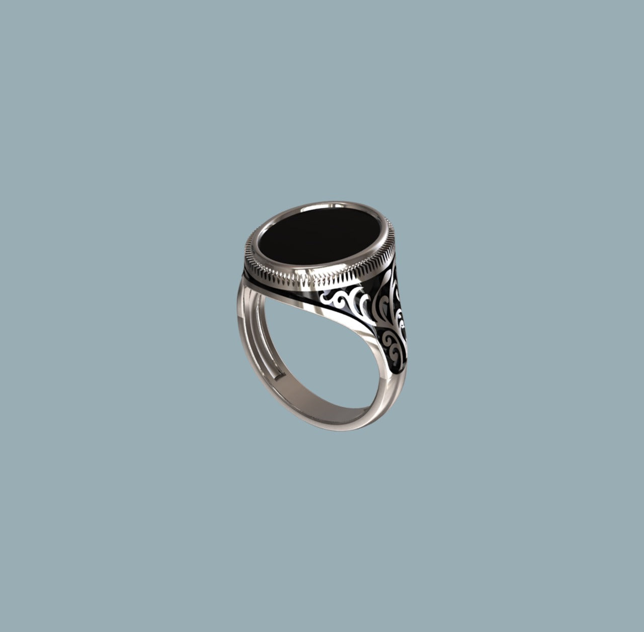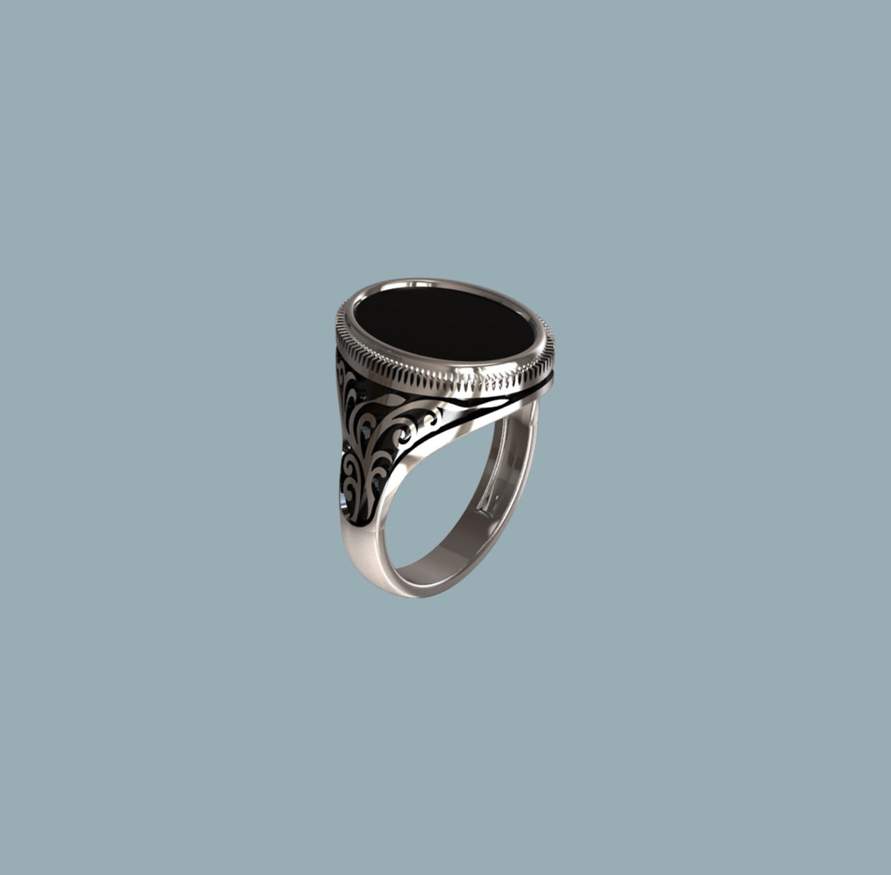 A unique sterling silver 925 gents ring set with a genuine 16mm x 12mm oval shape ONYX stone
