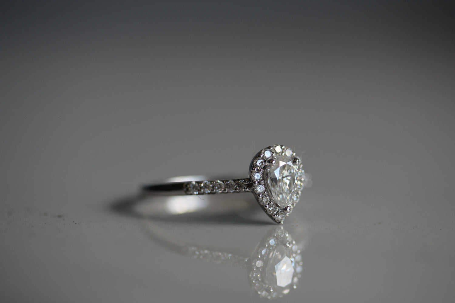 sterling silver metal set with white a pear shape 0.50 carat cubic zirconia