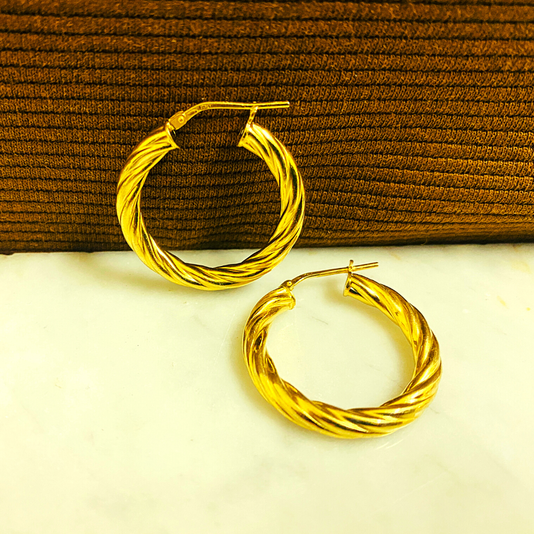 20mm Creole Twisted 18ct yellow Gold Plated Hoop Earrings (LHE07)