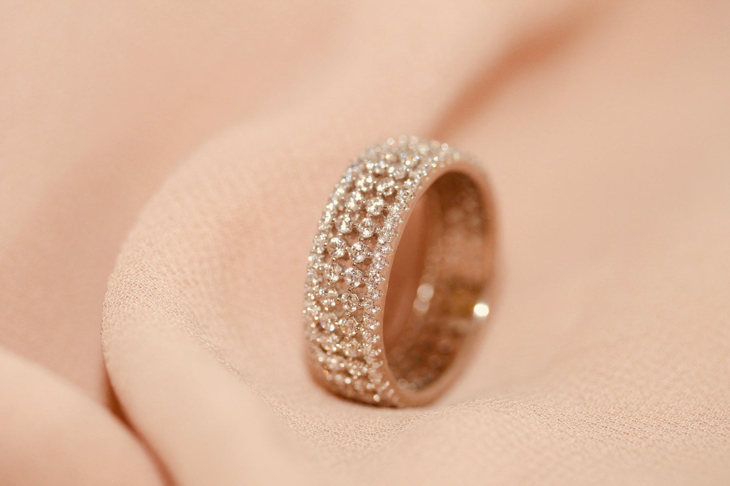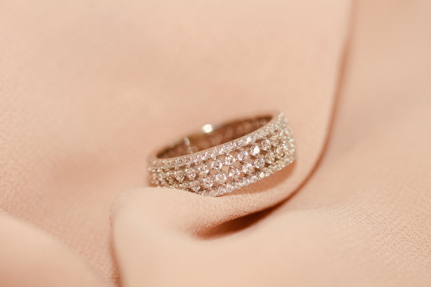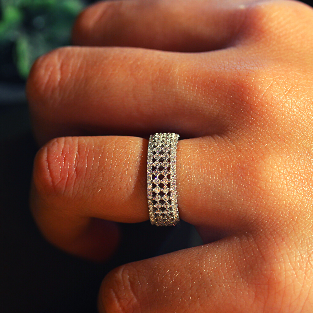 Another minimalistic piece. Classical and delicate. Meet "Daniil. A synthetic, round cubics in a diamond checkered setting.