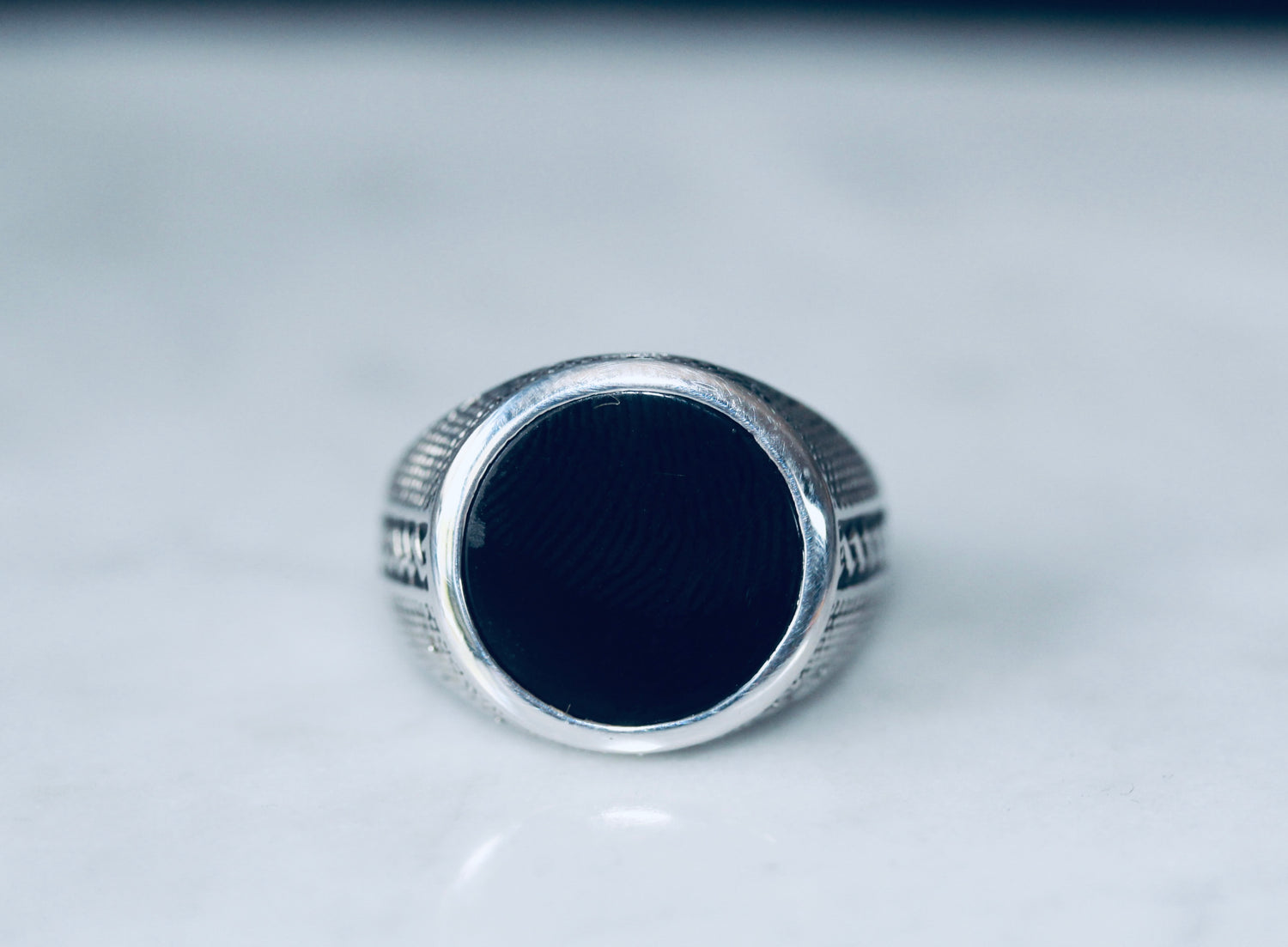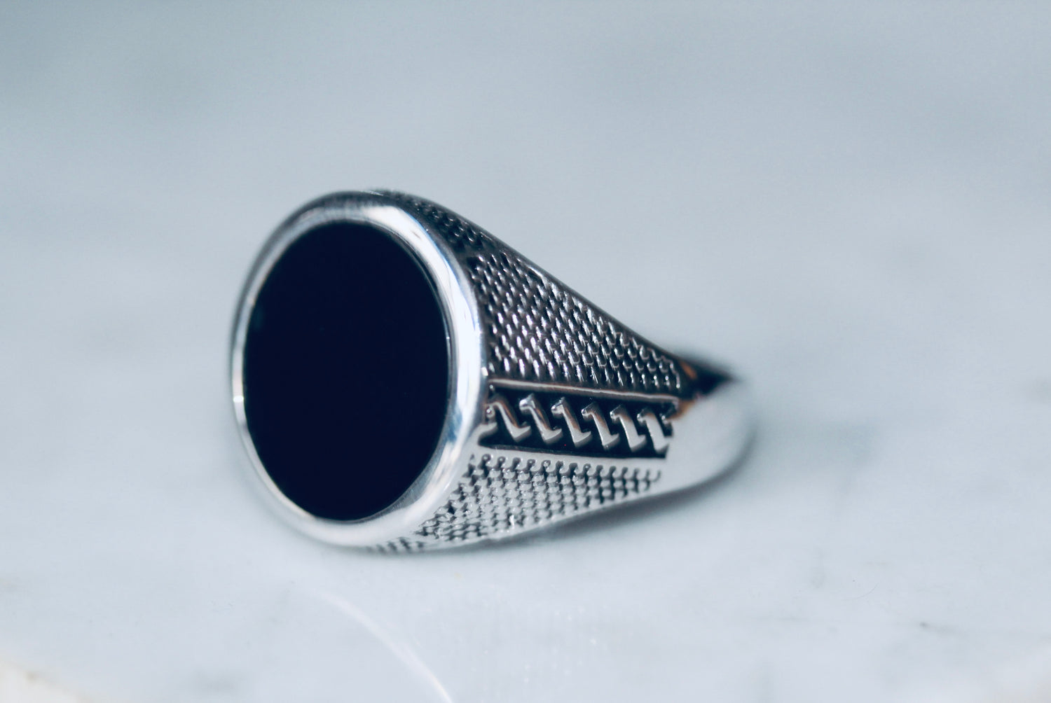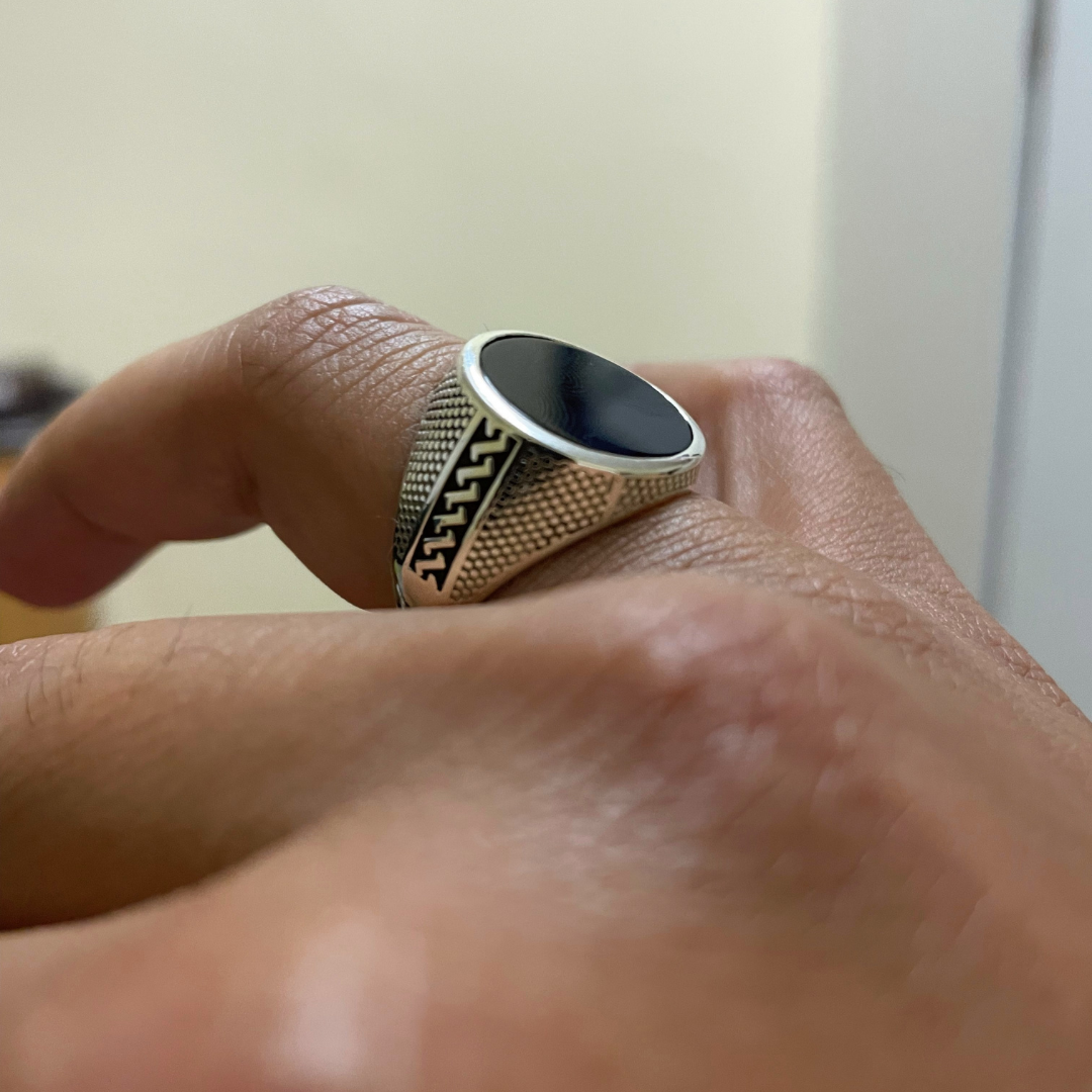 A unique sterling silver 925 gents ring , set with a genuine 15mm round shape ONYX stone