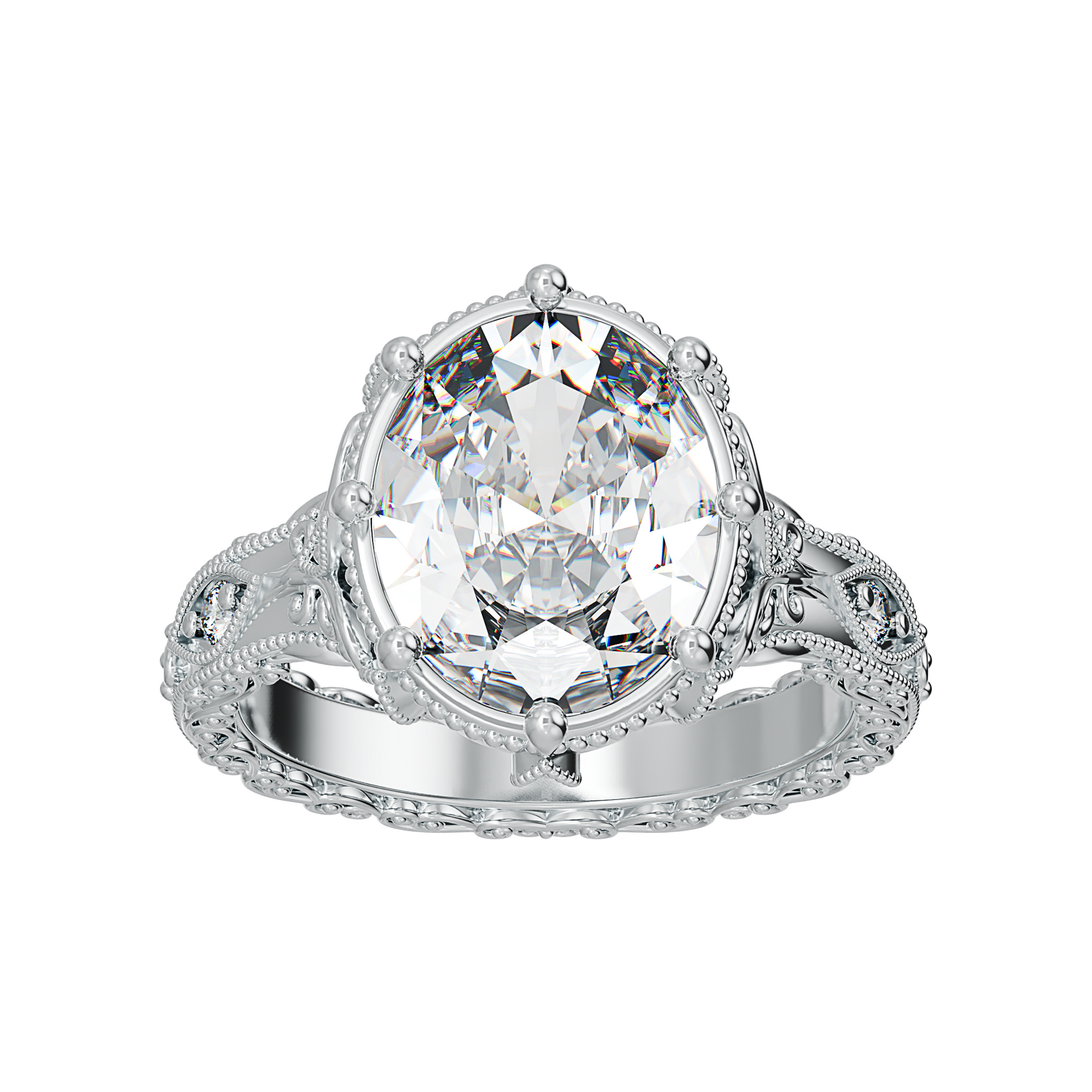 A 2 carat size oval shape centre stone and 2 x 2.5mm round shape white cubic zirconia stones