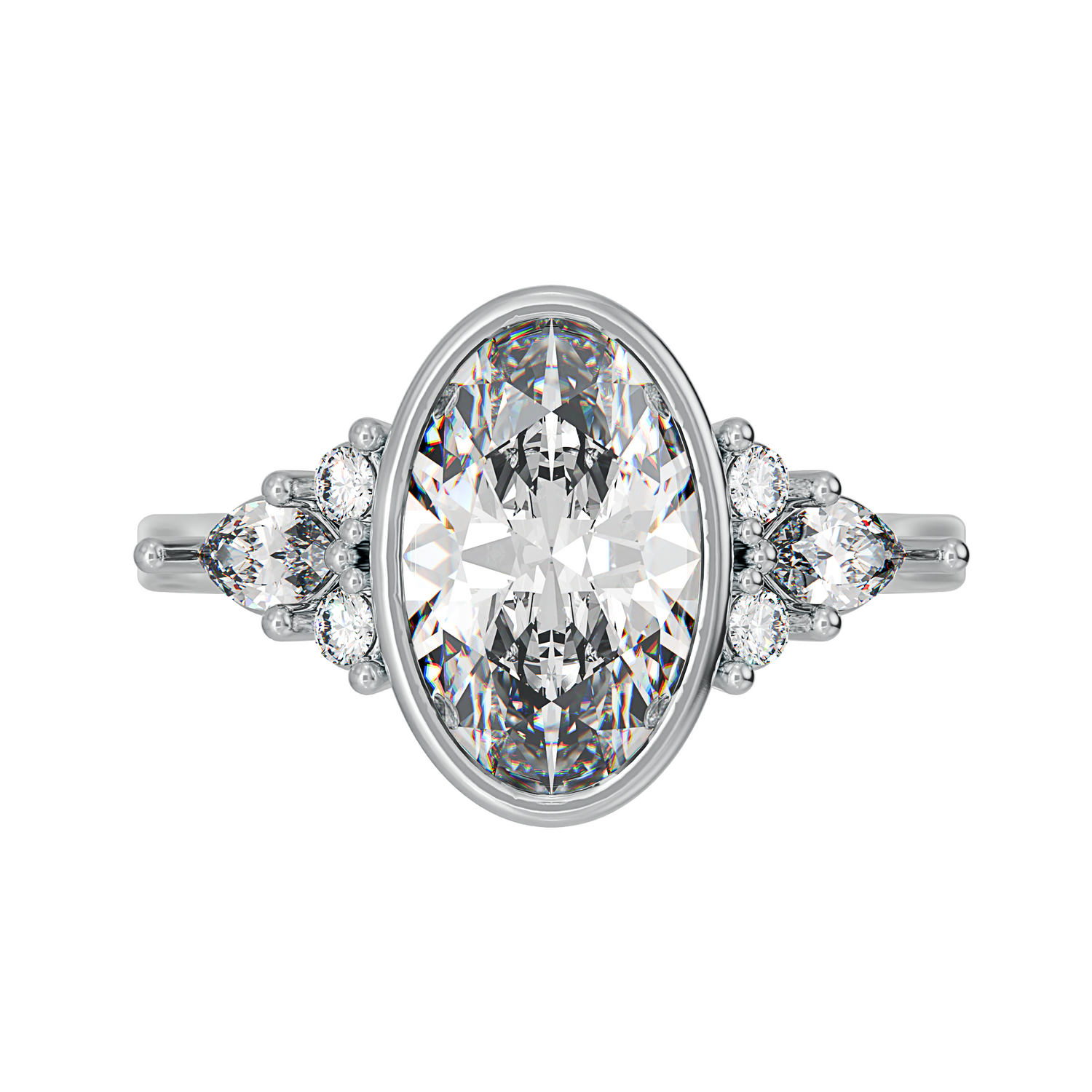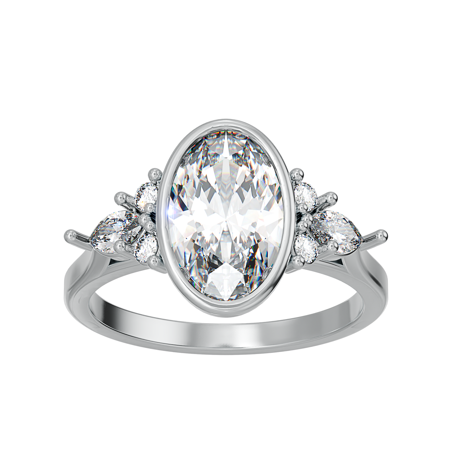 2 carat oval shape centre stone , 2 x 5mm*3mm marquee shape , 4 x 1.5mm round shape cubic zirconia stones