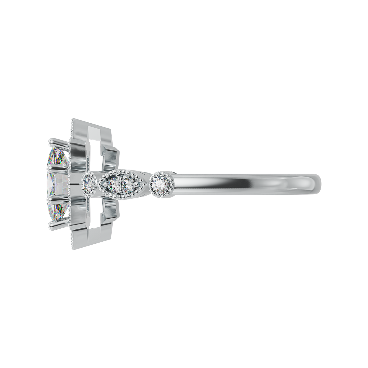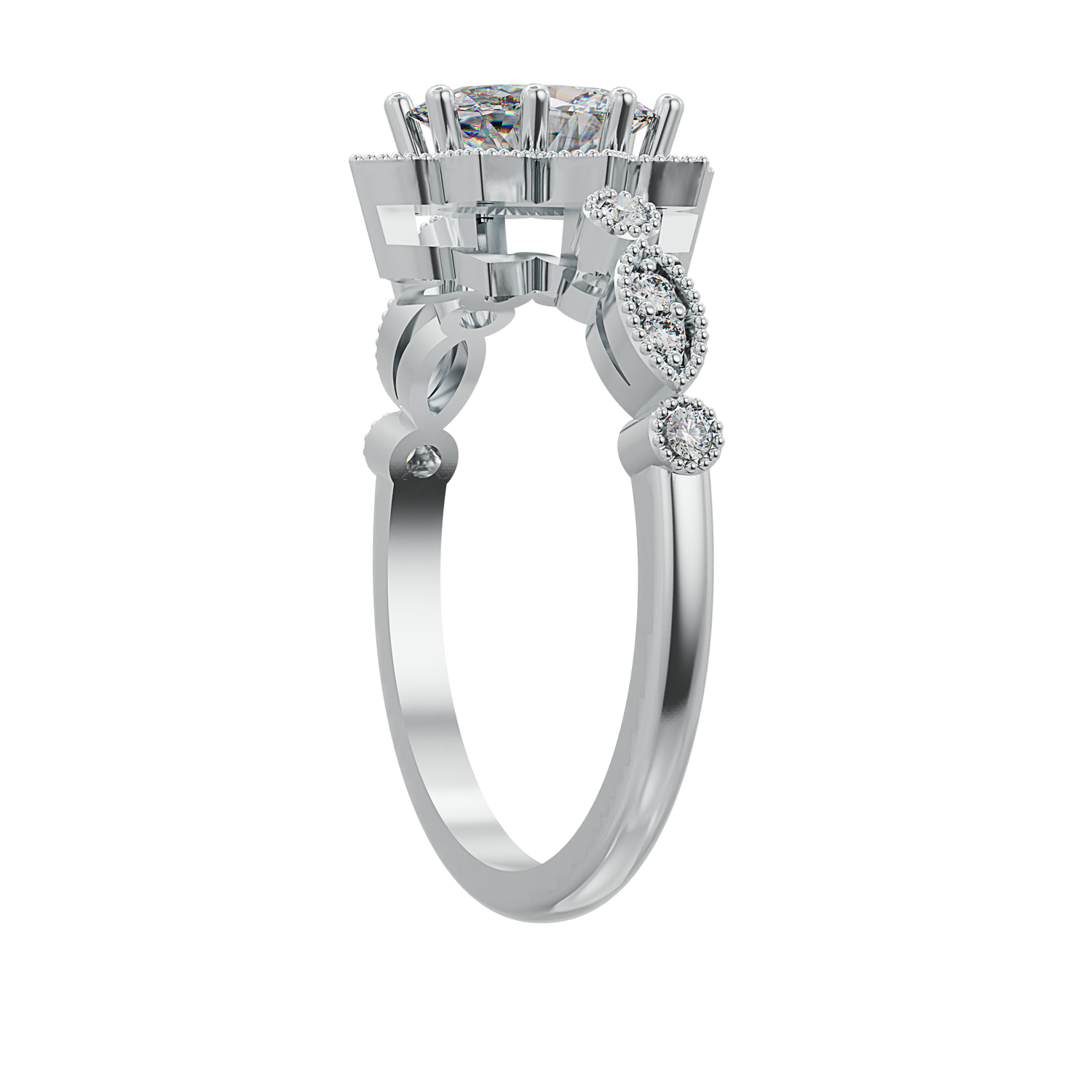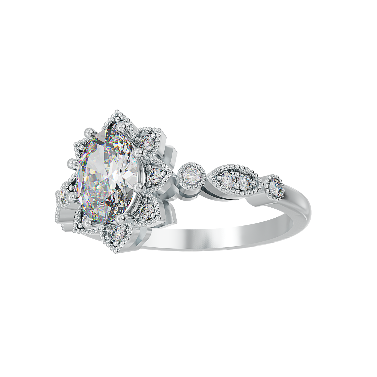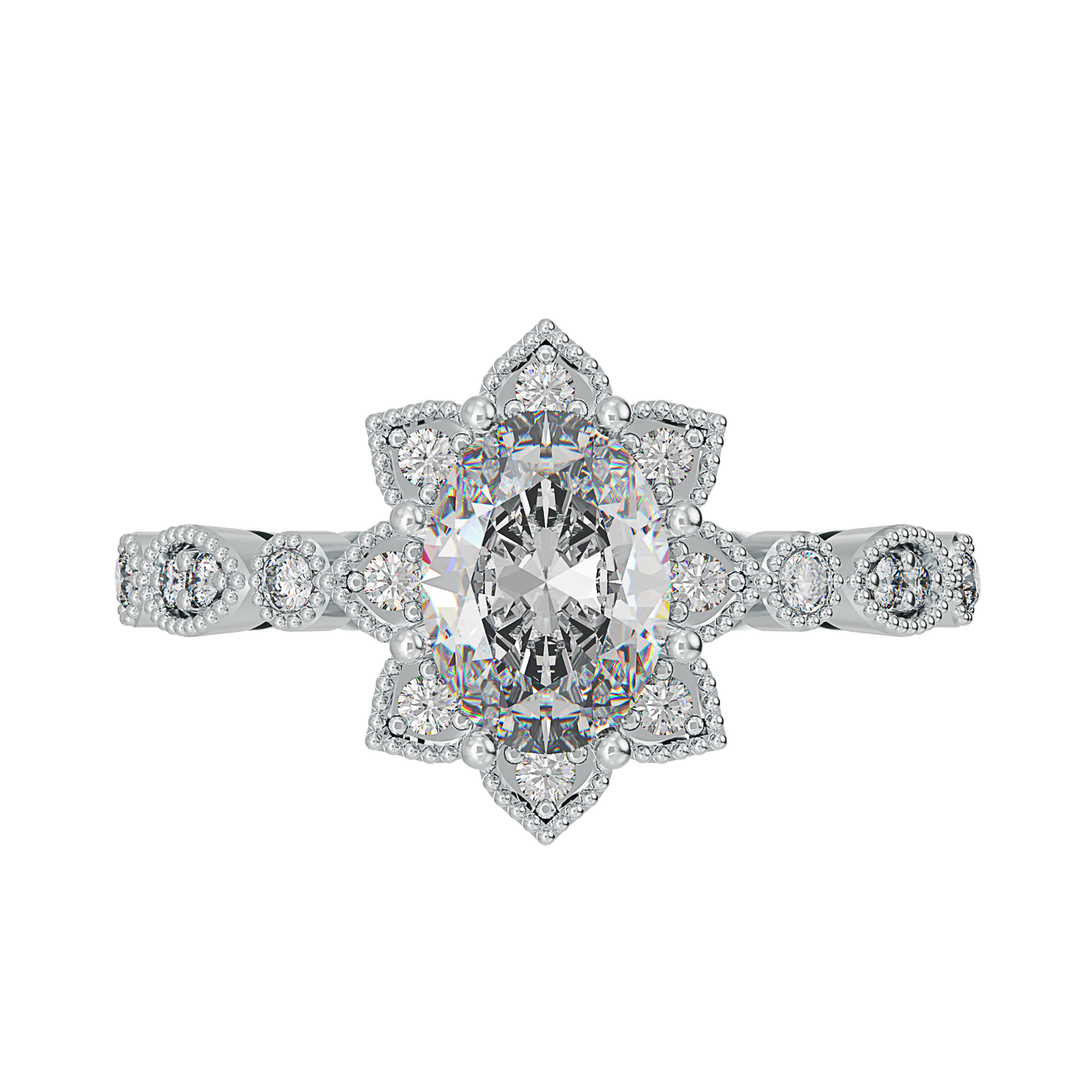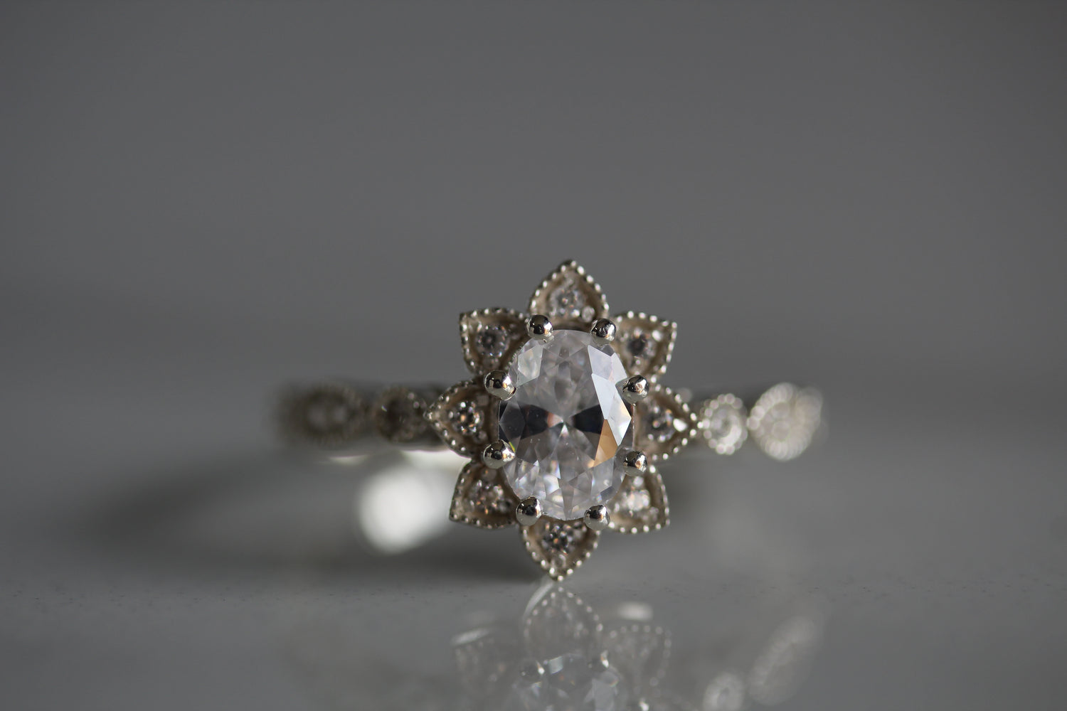 1 carat oval size shape centre stone and 16 x 1.25mm round shape white cubic zirconia stones