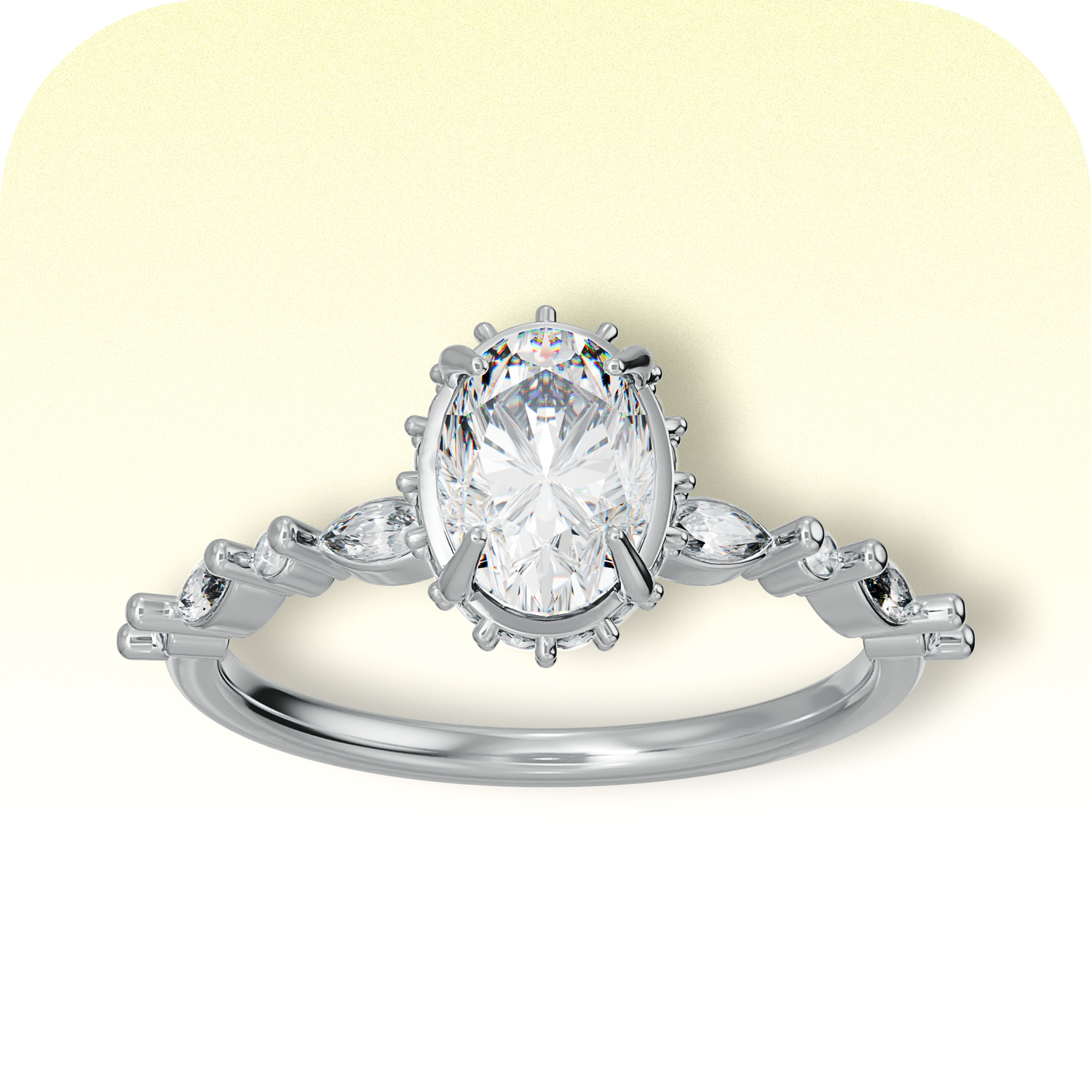 2 carat size oval shape stone , 4 x 5mm x 3mm marquee shape , 4 x 1.5mm round shape , 20 x 1.25mm round shape cubic zirconia stones