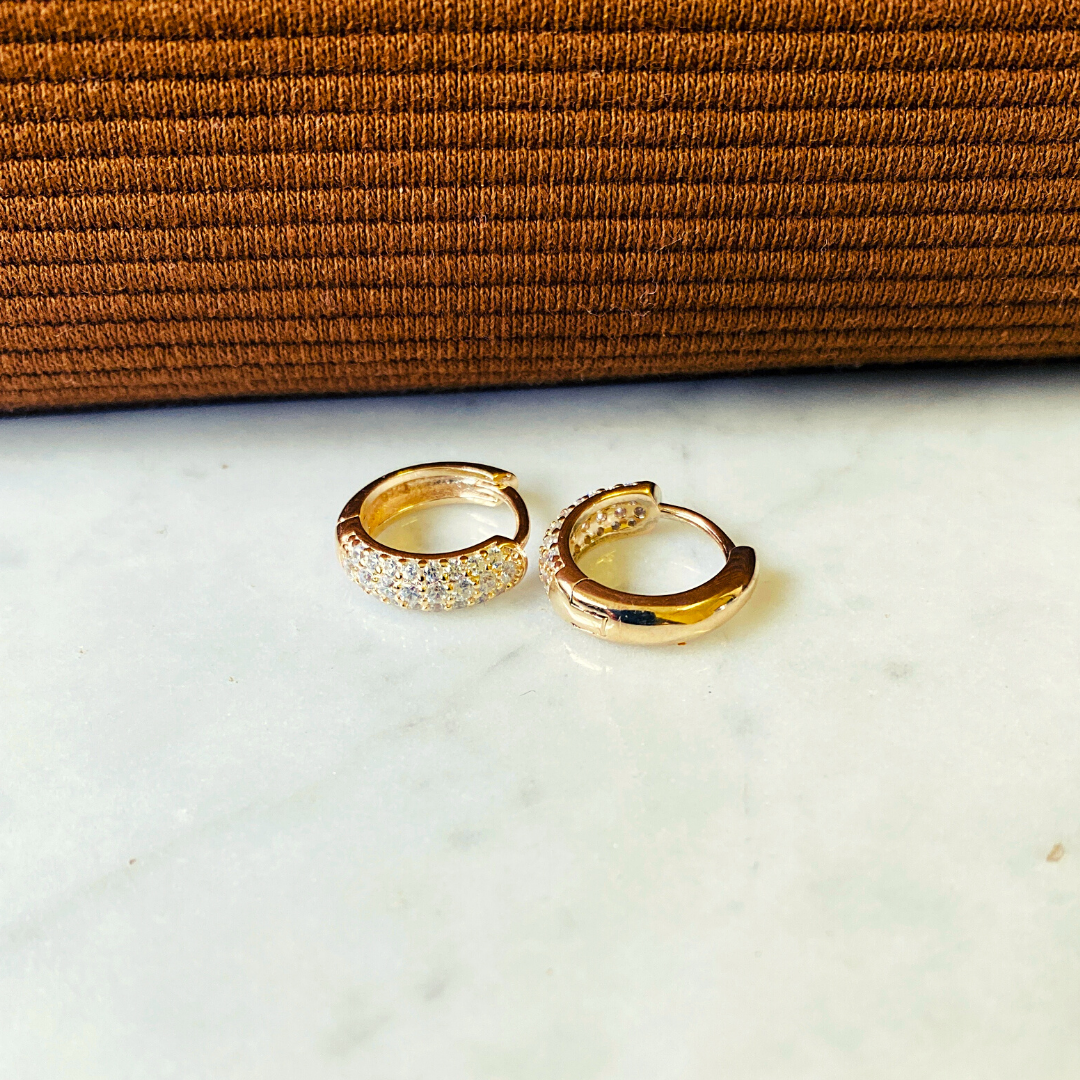18ct yellow gold plated 15mm clicker clip half round shape huggie earring set with AAA white cubic zirconia stones