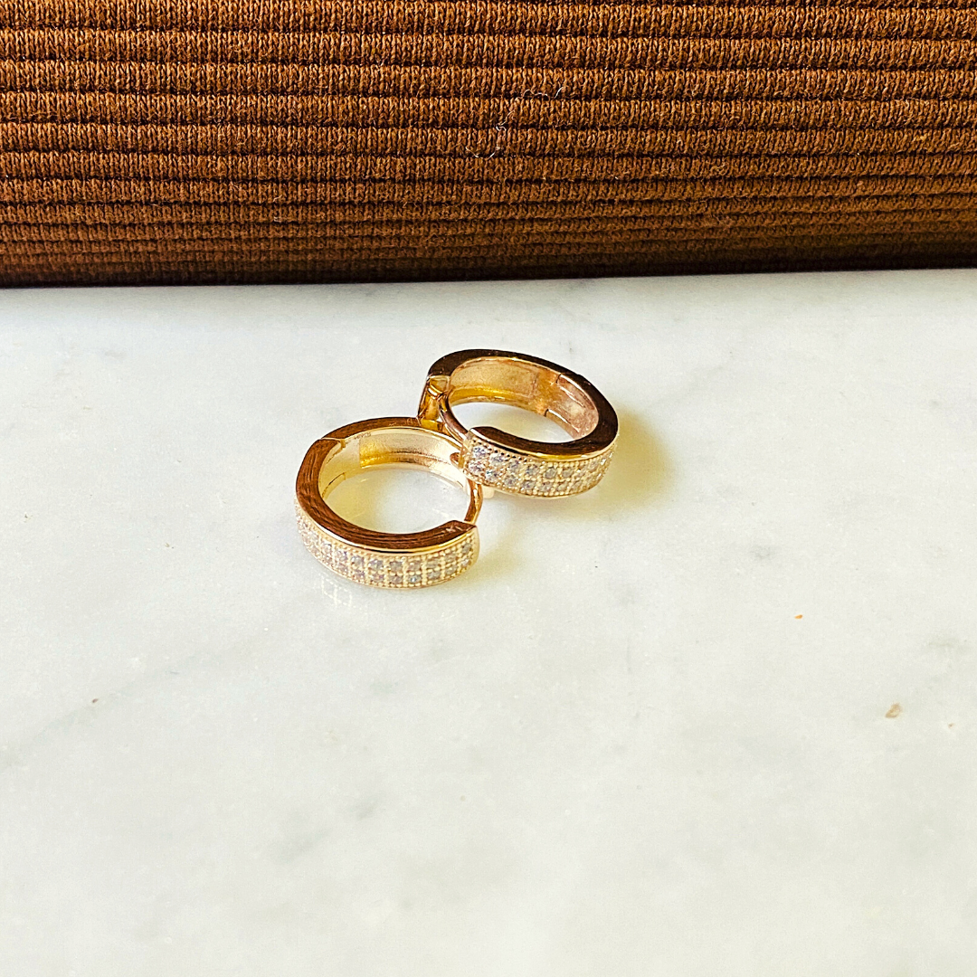 18ct yellow gold plated 15mm clicker clip flat half round shape huggie earrings set with AAA white cubic zirconia stones
