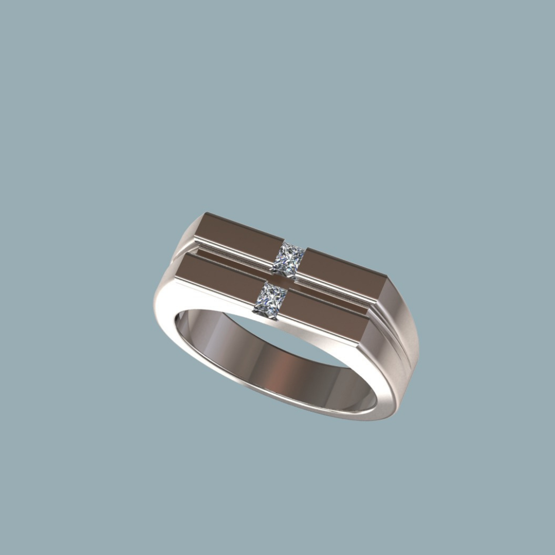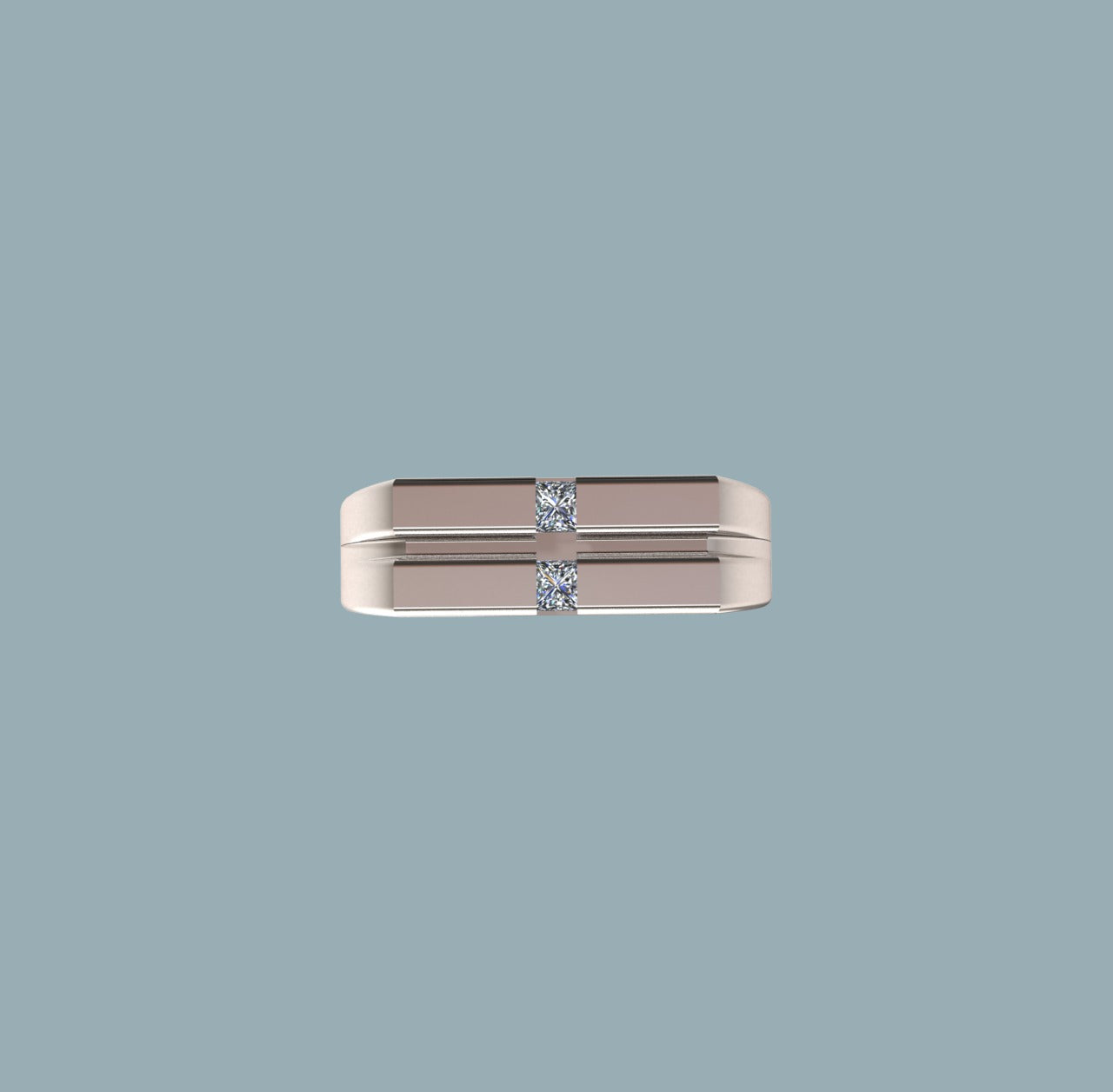 A unique sterling silver 925 gents ring set with synthetic , 2 x 2mm square white cubic zirconia stones