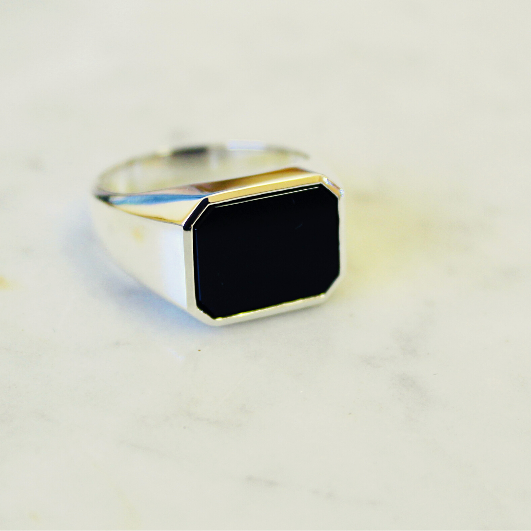 A unique sterling silver 925 gents ring, set with a genuine 15mm x 12mm elongated octagon horizontal shape ONYX stone