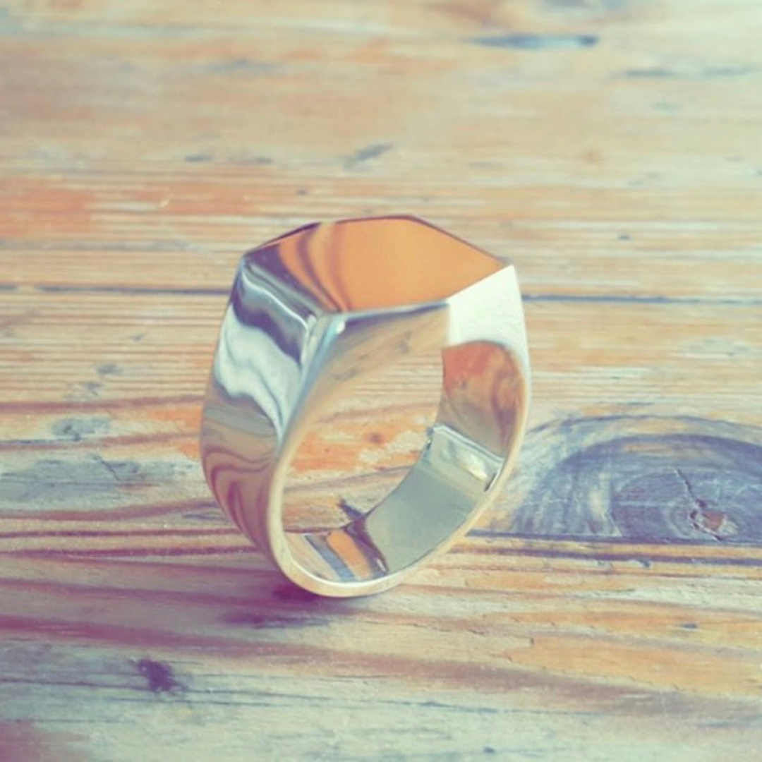 Sterling silver gents design inspired by a shield.