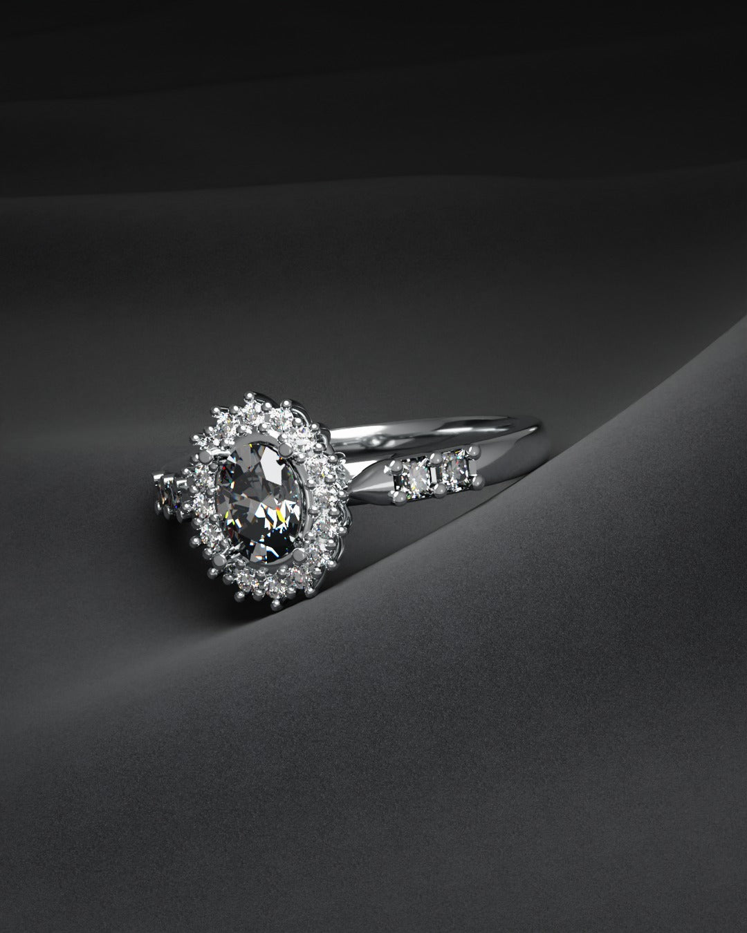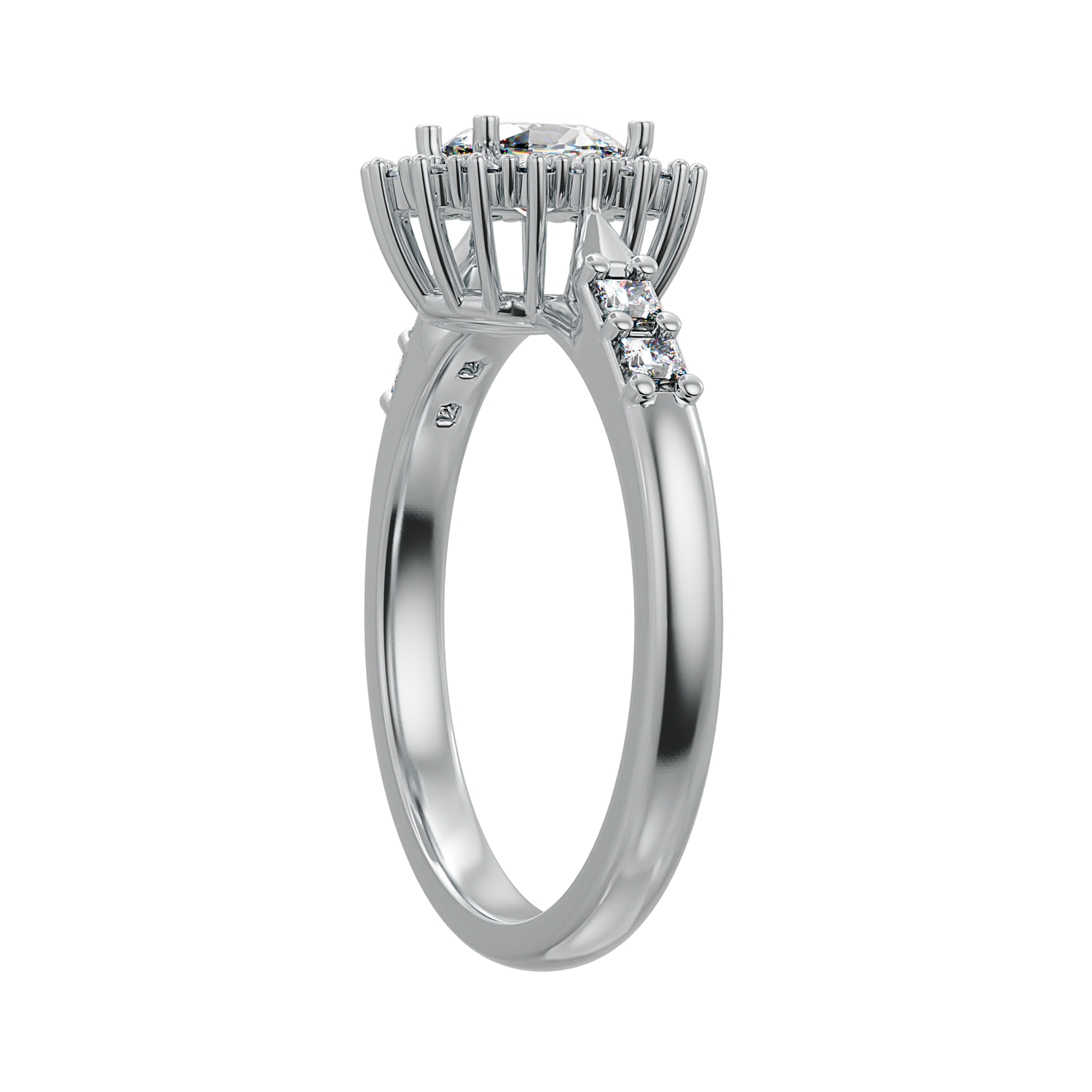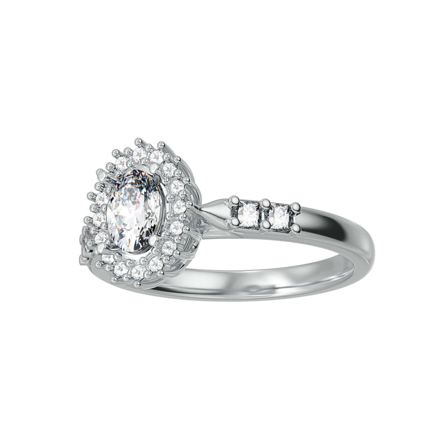 1 carat size oval shape centre stone , 16 x 1.3mm round shape and 4 x 2mm square white cubic zirconia stones