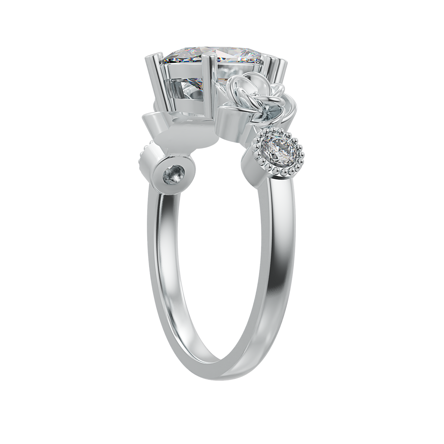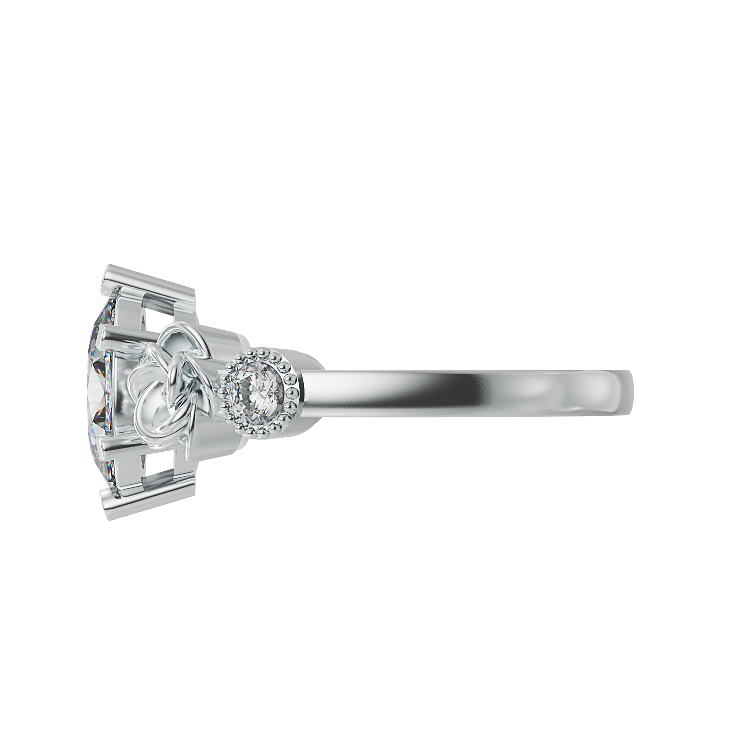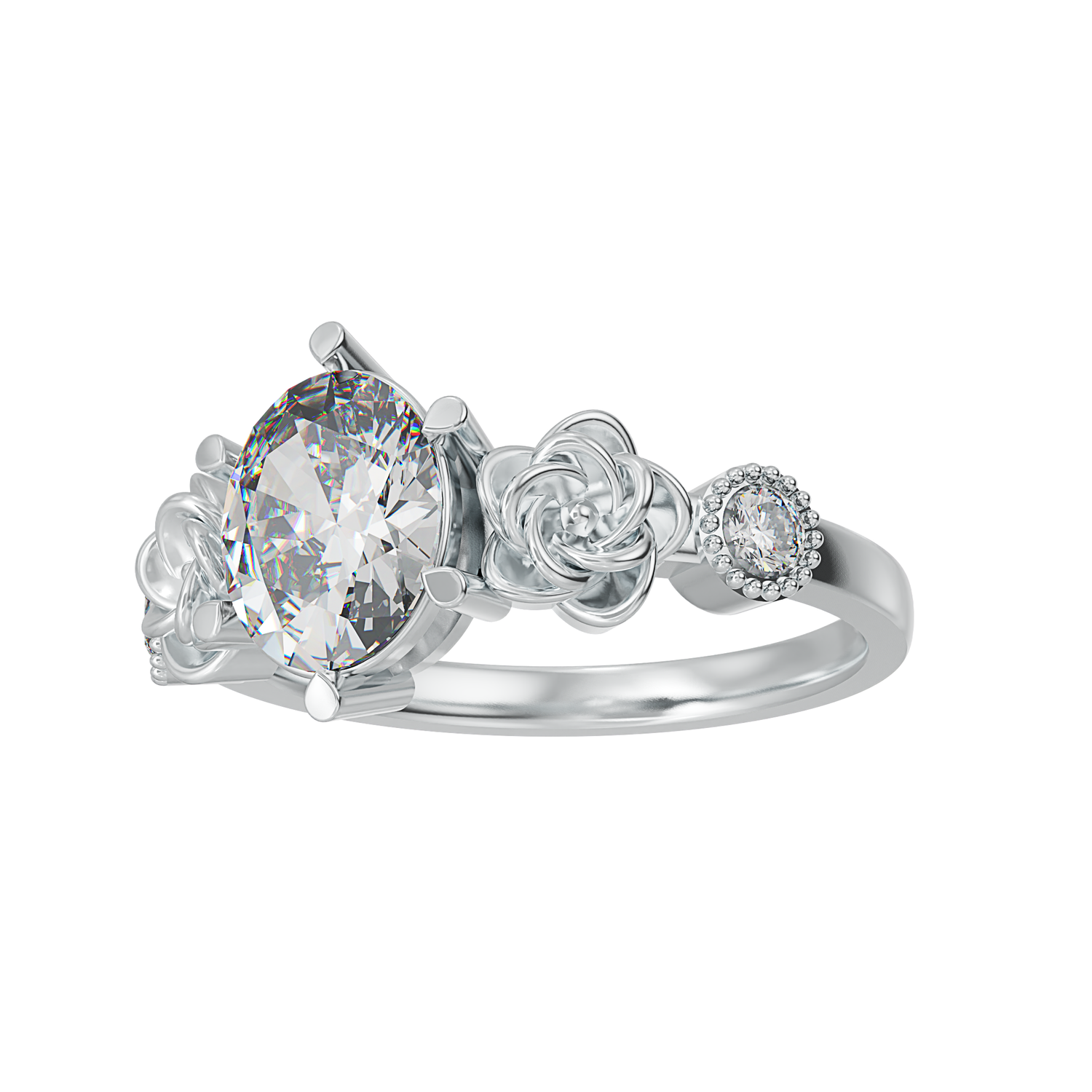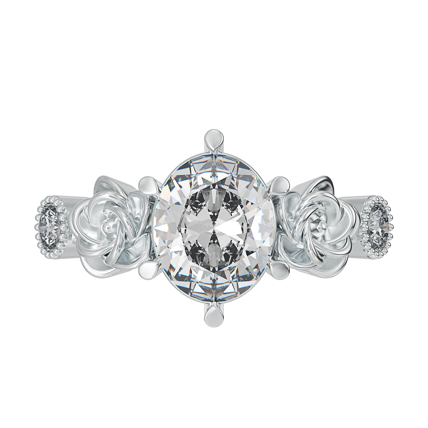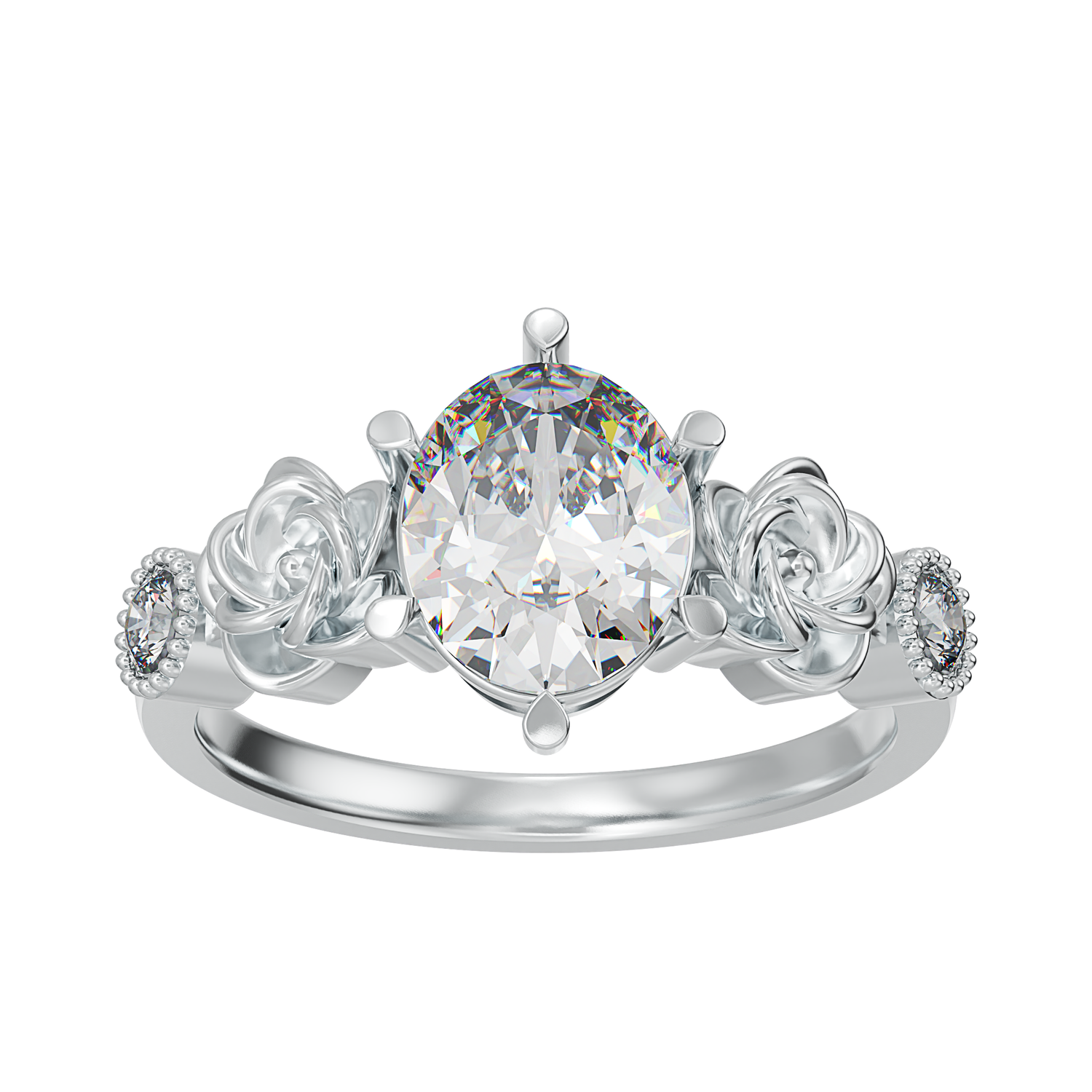 2 carat oval shape centre stone and 2 x 2.5mm round shape cubic zirconia stones