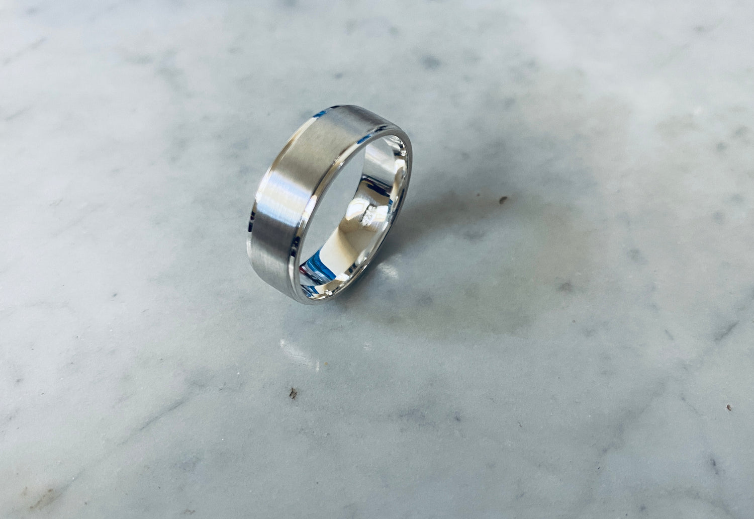 A unique sterling silver 925 STEP DOWN , matte centre wedding band