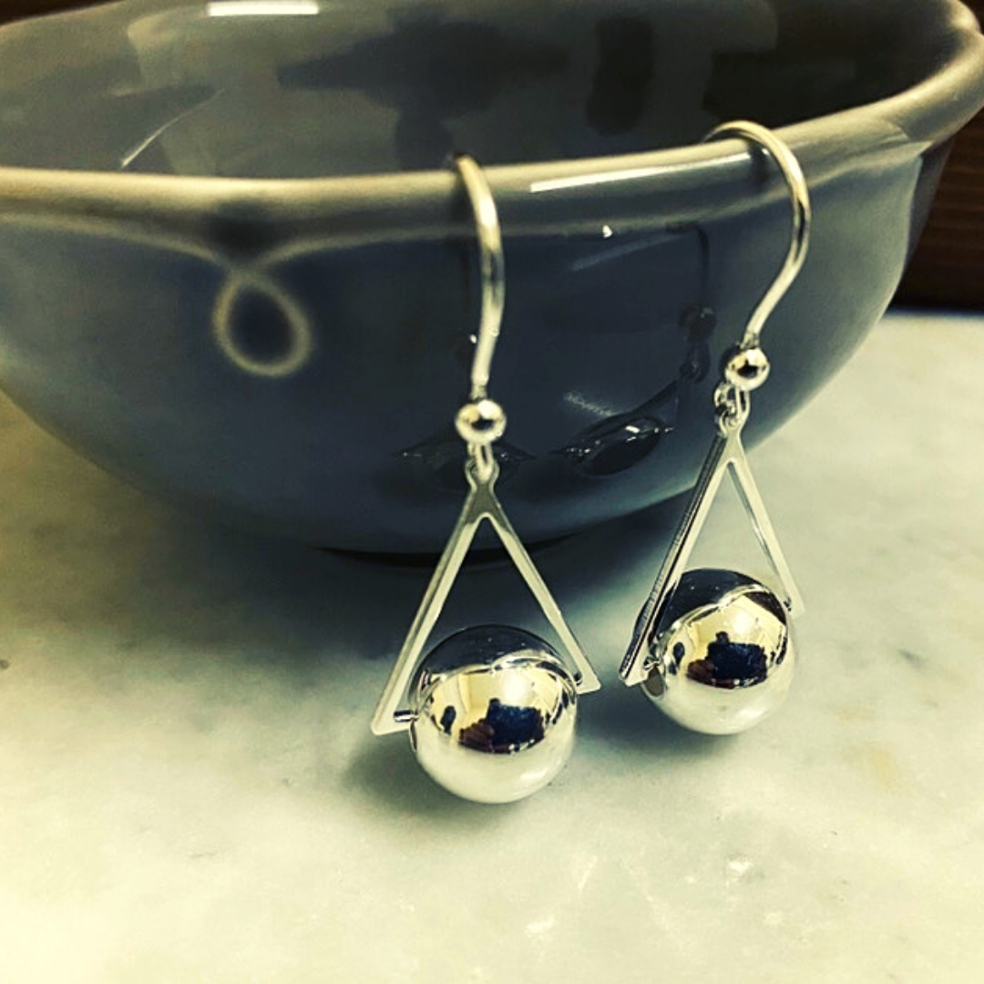 V-SHAPE Ball 15mm Earrings (LHE12-1) Sterling Silver metal